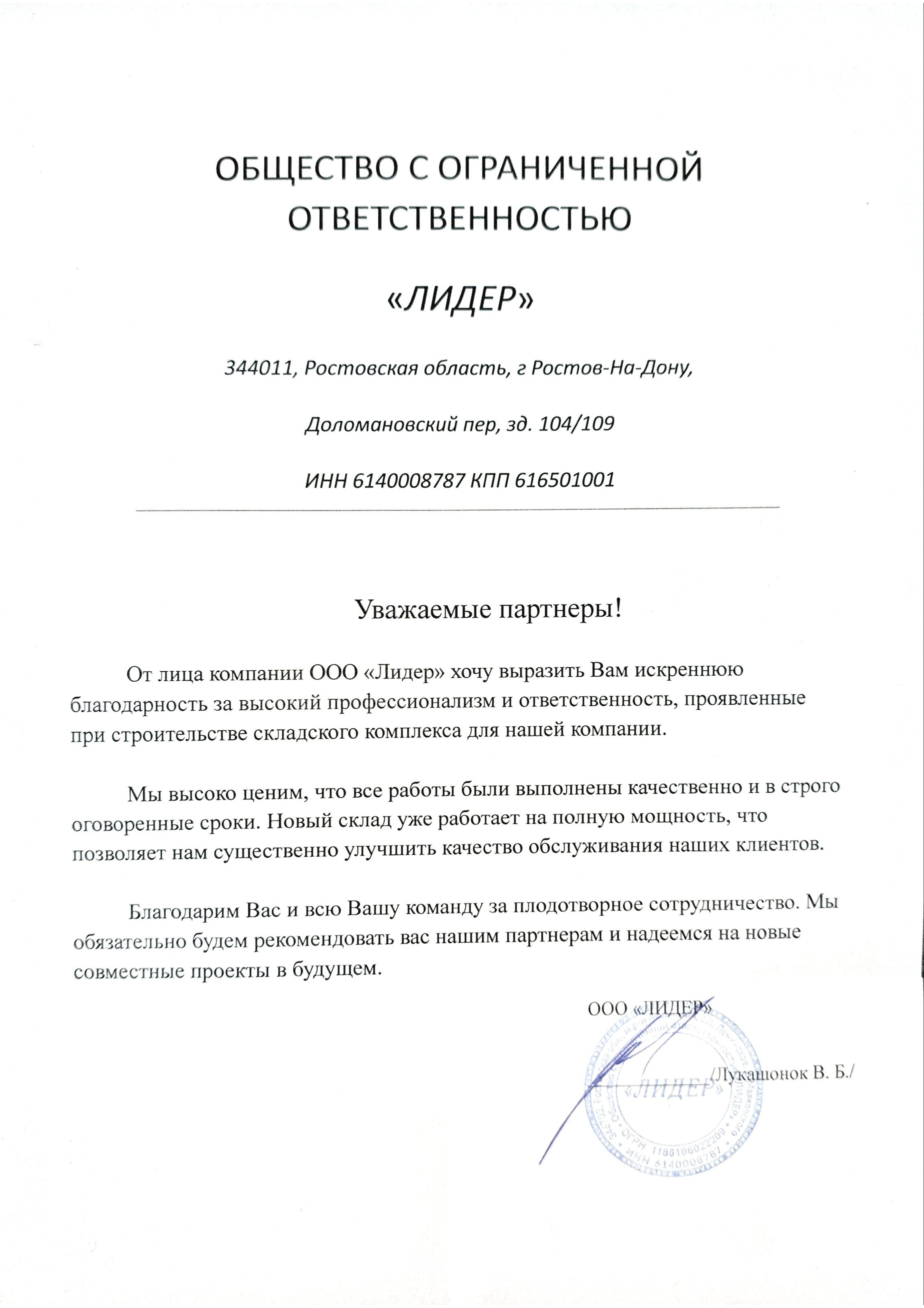 Более 175 благодарственных писем: знак доверия и признания от наших клиентов